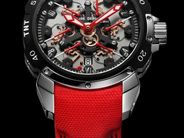 A marvel of originality, technicality and sportiness, the Pierre DeRoche TNT Royal Retro and the balletic dance of its six retrograde second hands have fascinated watch lovers for more than a decade. The latest incarnation of this unique complication, the TNT Royal Retro 43 Diablo, pushes the limits of watchmaking expertise even further and reveals a fiery temperament