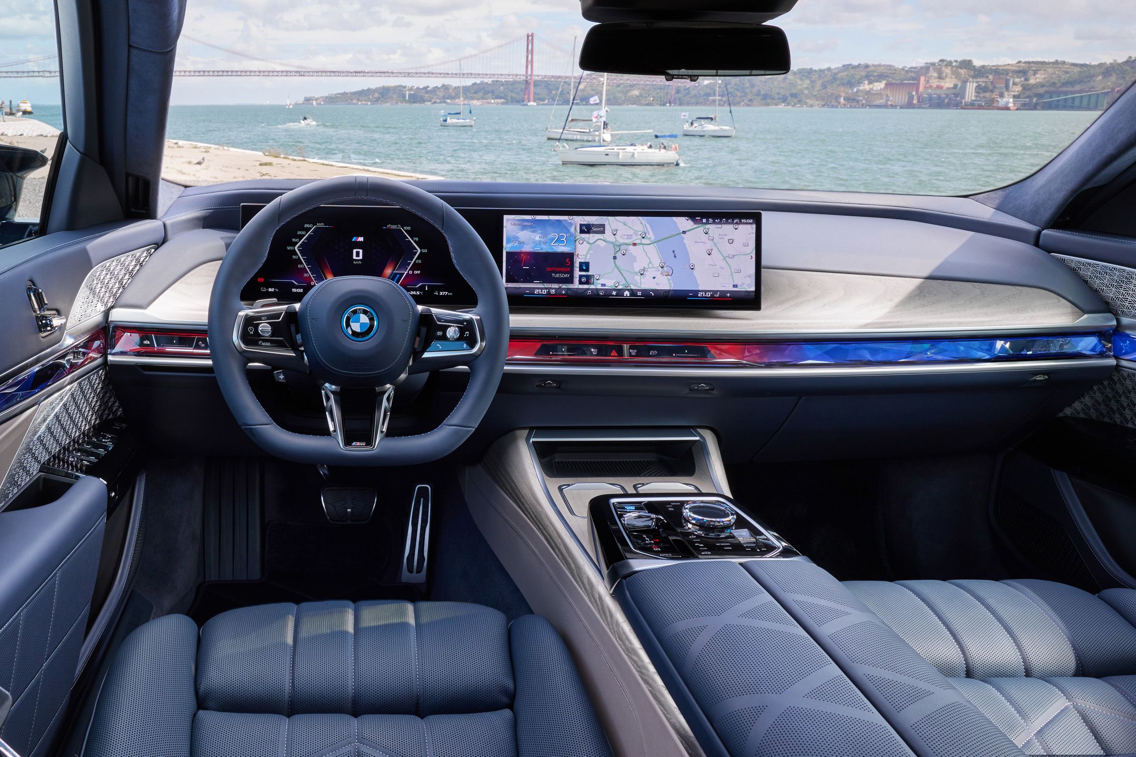 Performance hasn’t been neglected. Twin electric motors provide all-wheel drive and instantaneous torque, making the 0–100 km/h sprint achievable in under 4.7 seconds despite the i7’s limousine size. Suspension is equally sophisticated, with air ride systems adapting to both highway cruising and urban bumps.