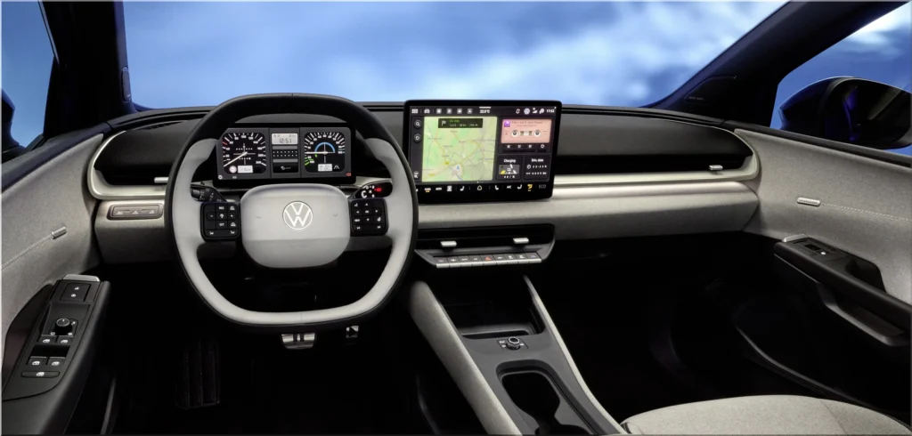 Large digital displays replace traditional dashboards, providing drivers with real-time performance data, navigation information, and vehicle settings.